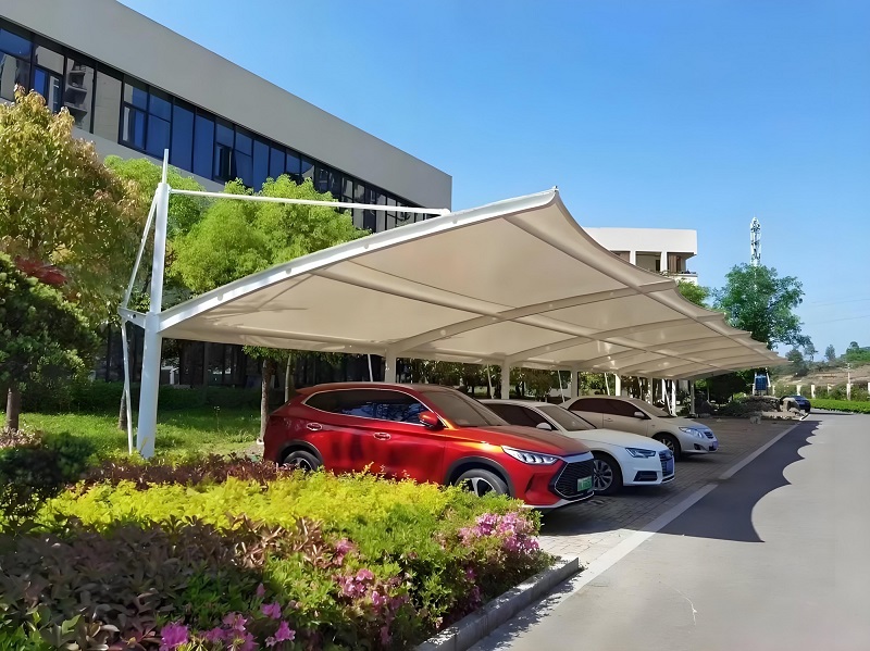 应用场景,膜结构车棚广泛适用于公共设施、商业空间及工业领域。例如,在体育场馆、学校等公共场所,其大跨度特性可覆盖数百辆汽车;在商业综合体,异形设计可与建筑风格融合;在物流园区,ETFE膜材的耐腐蚀性可应对酸碱环境。